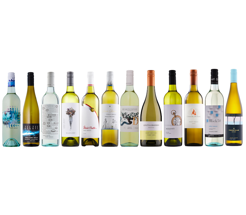 This Mixed 12-Pack Pre-Selected Dozen of Pinot Grigio/Pinot Gris Wines contains one bottle each of the following wines: